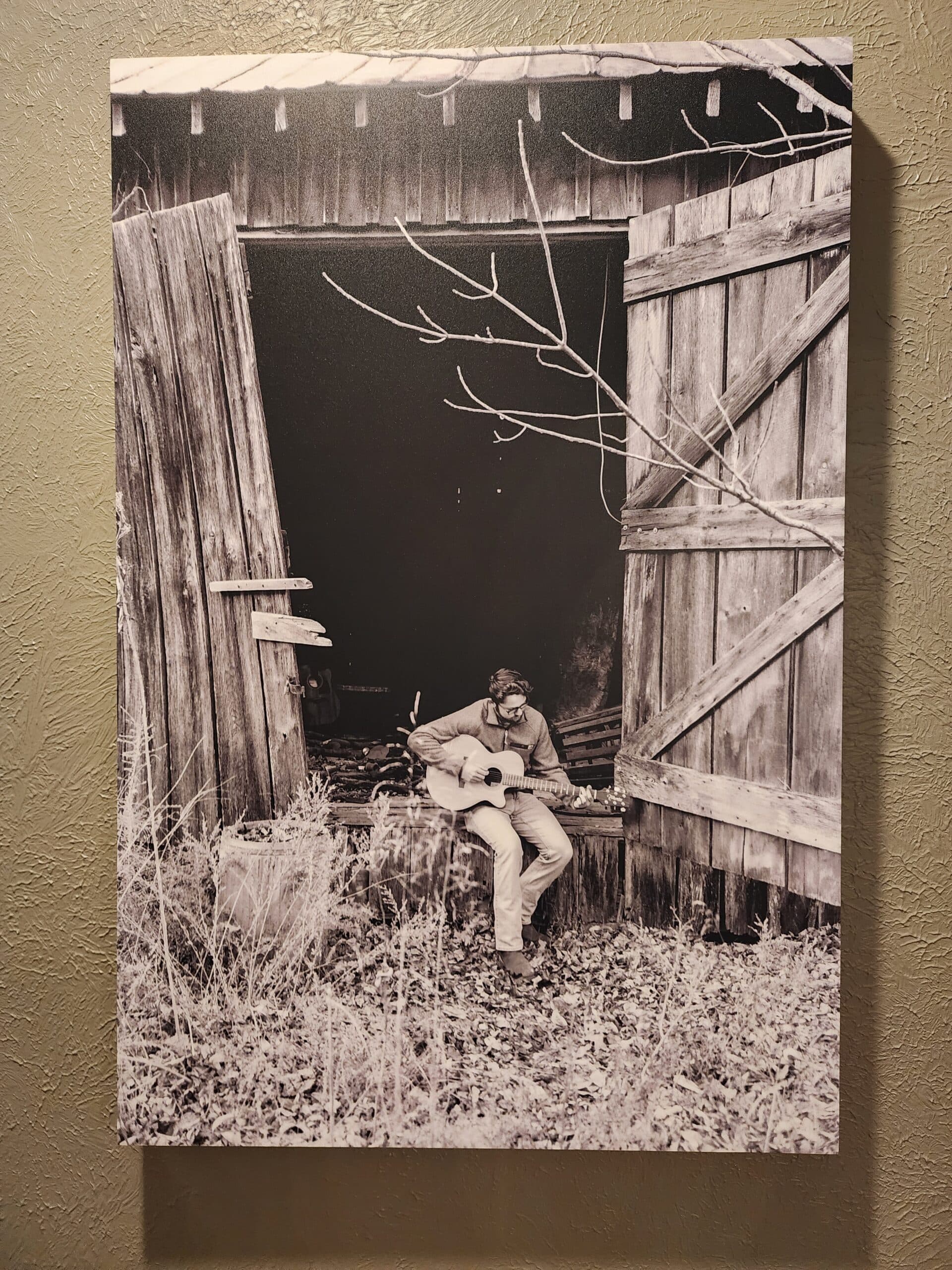 Empire Farms has two old structures that remain standing as a testament to the family that once inhabited the land before the area was flooded. The barn in this photograph made a remarkable backdrop for Chase and his guitar.”